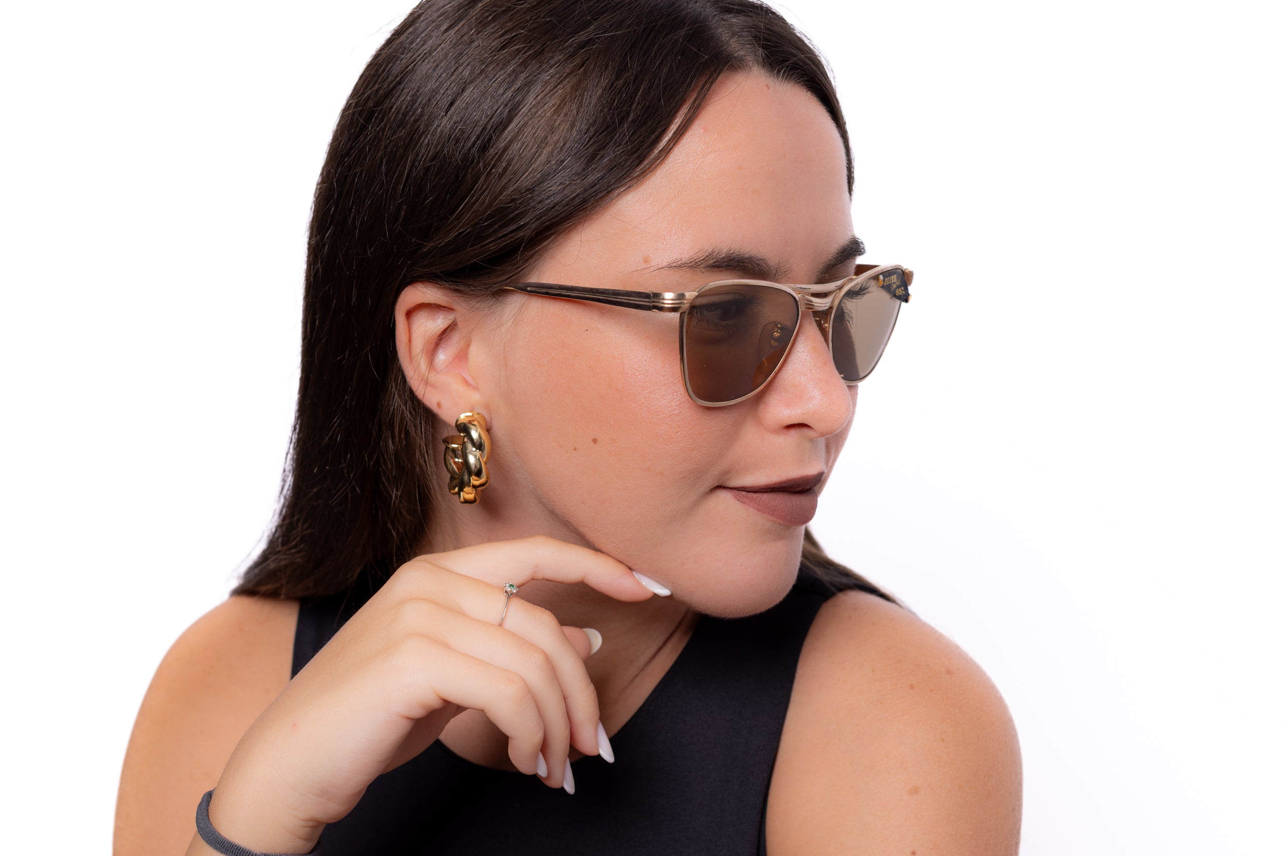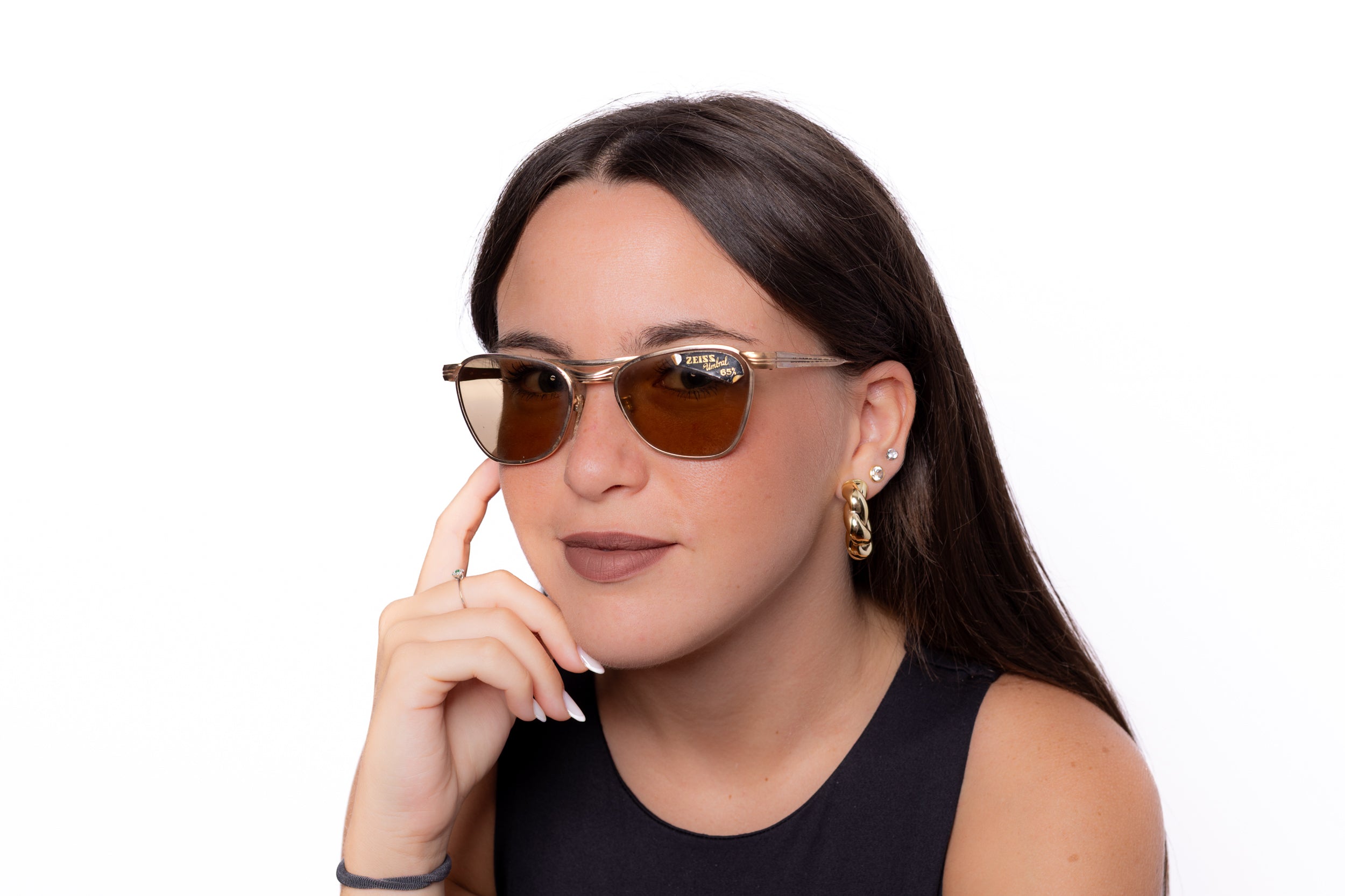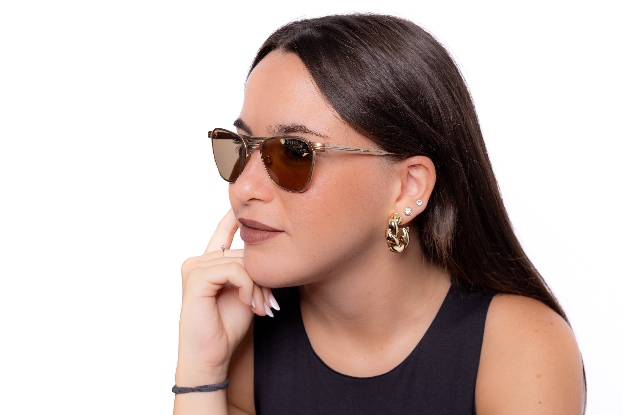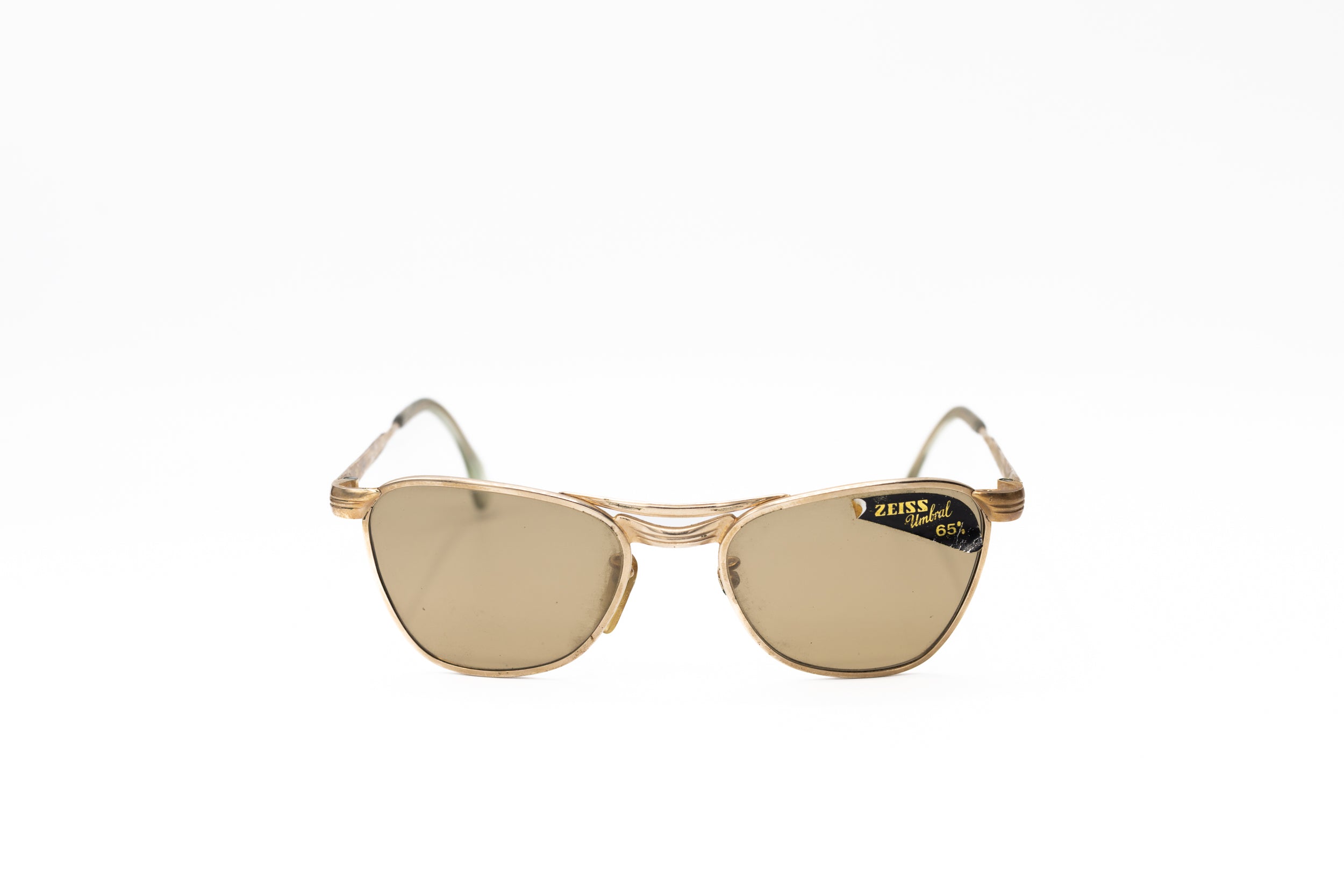 1960s Marwitz sunglasses, featuring a squared gold metal frame with iconic double bridge, and Zeiss Umbral glass lenses.