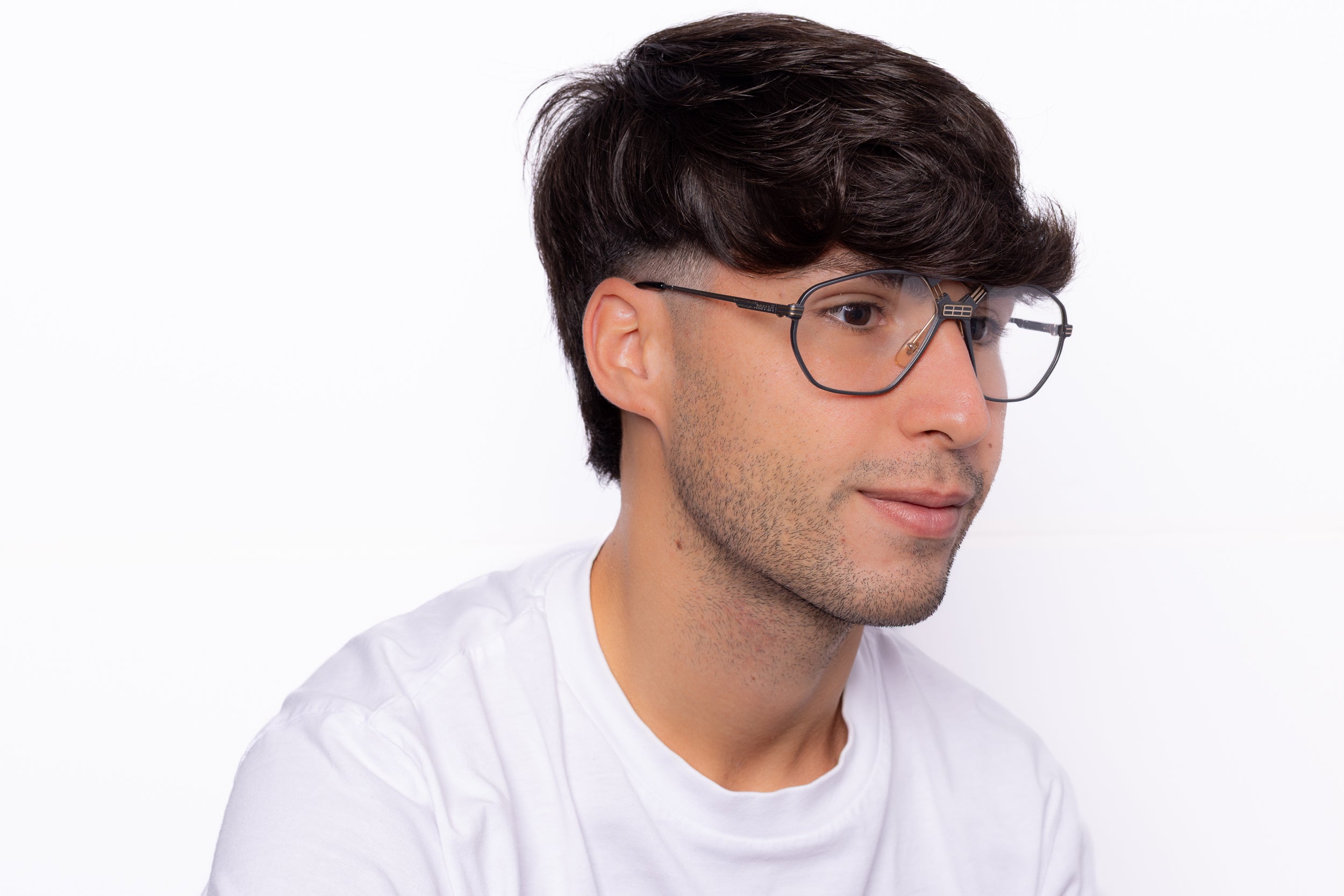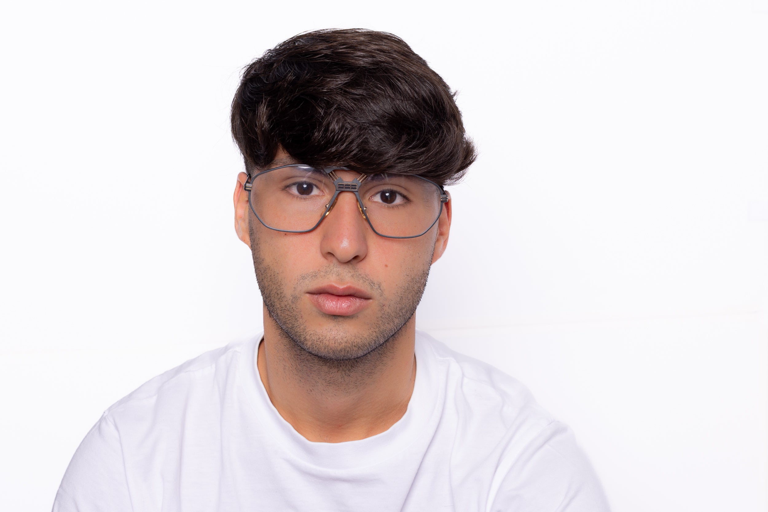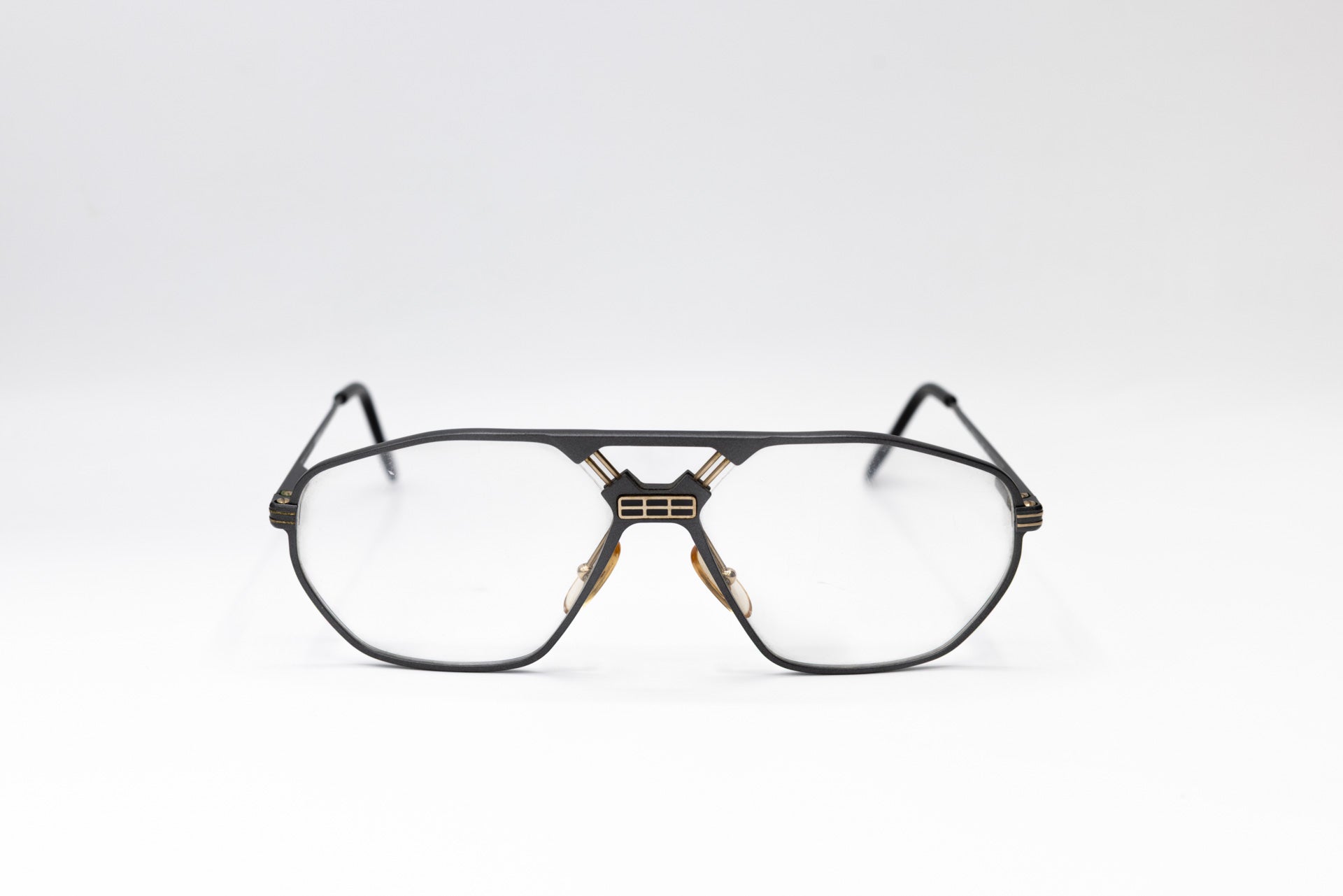Stunning pair of vintage eyeglasses by Ferrari, featuring an aluminium frame in gray enhanced by a double bridge with the iconic Ferrari logo. A unique piece with timeless flair.