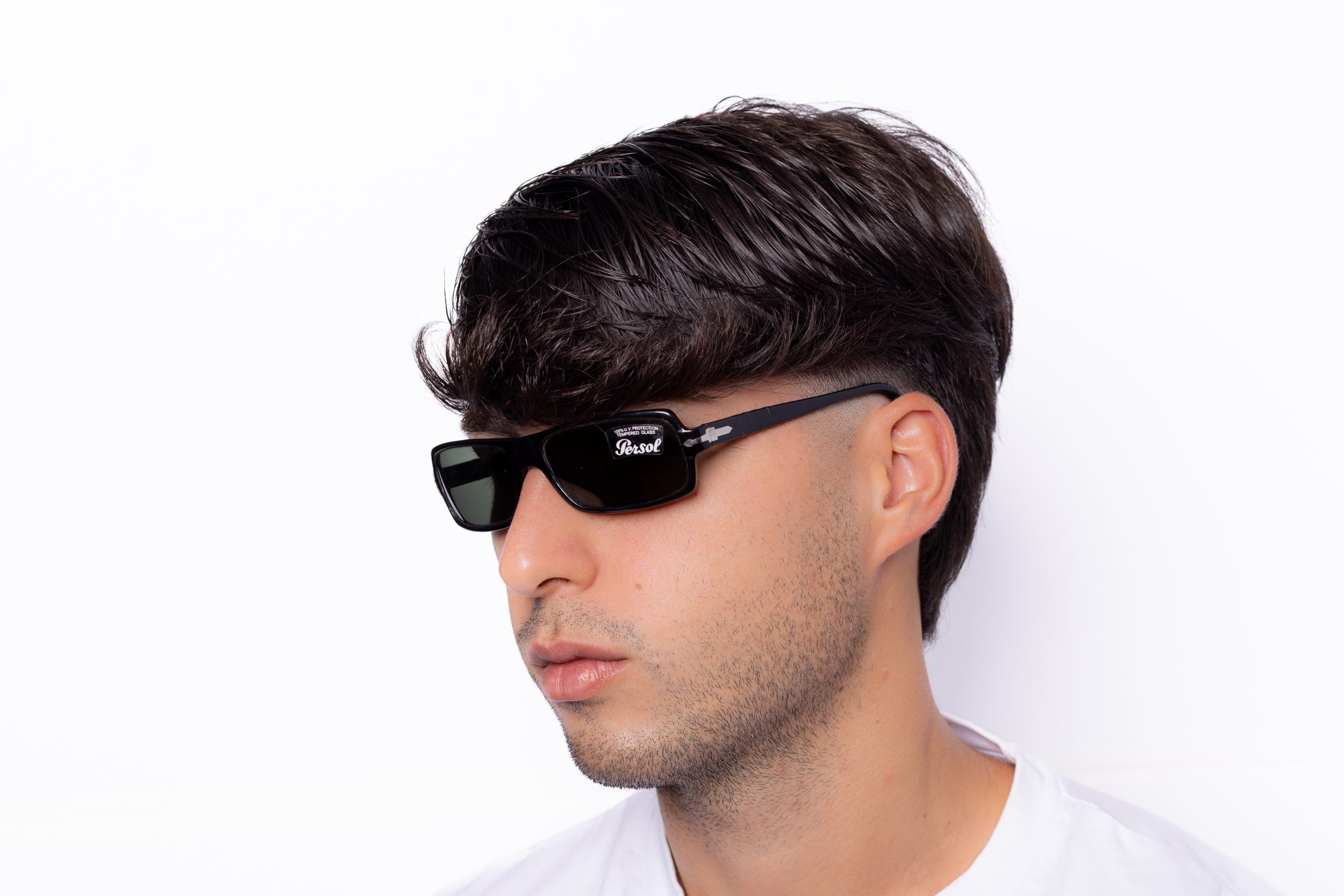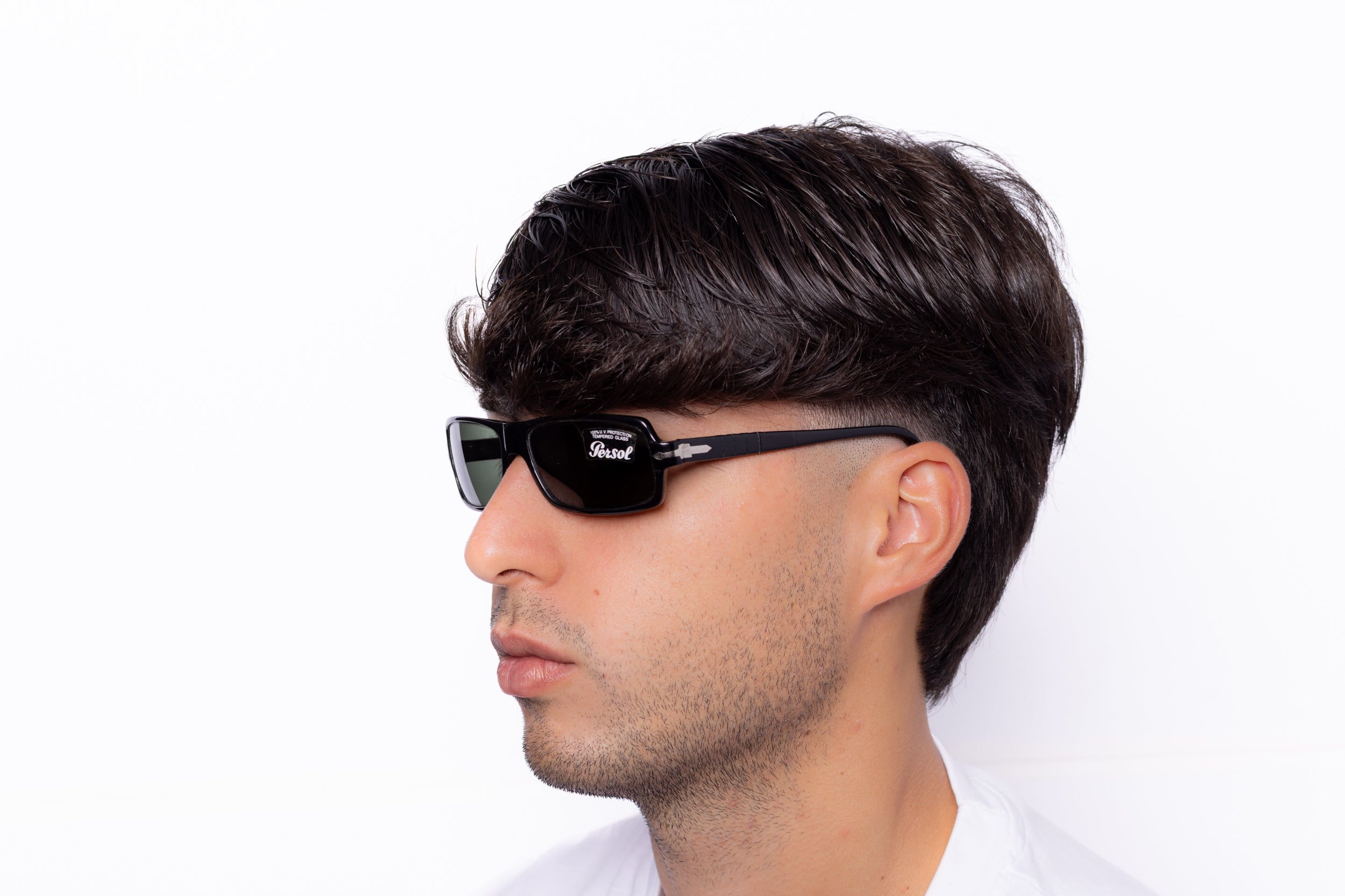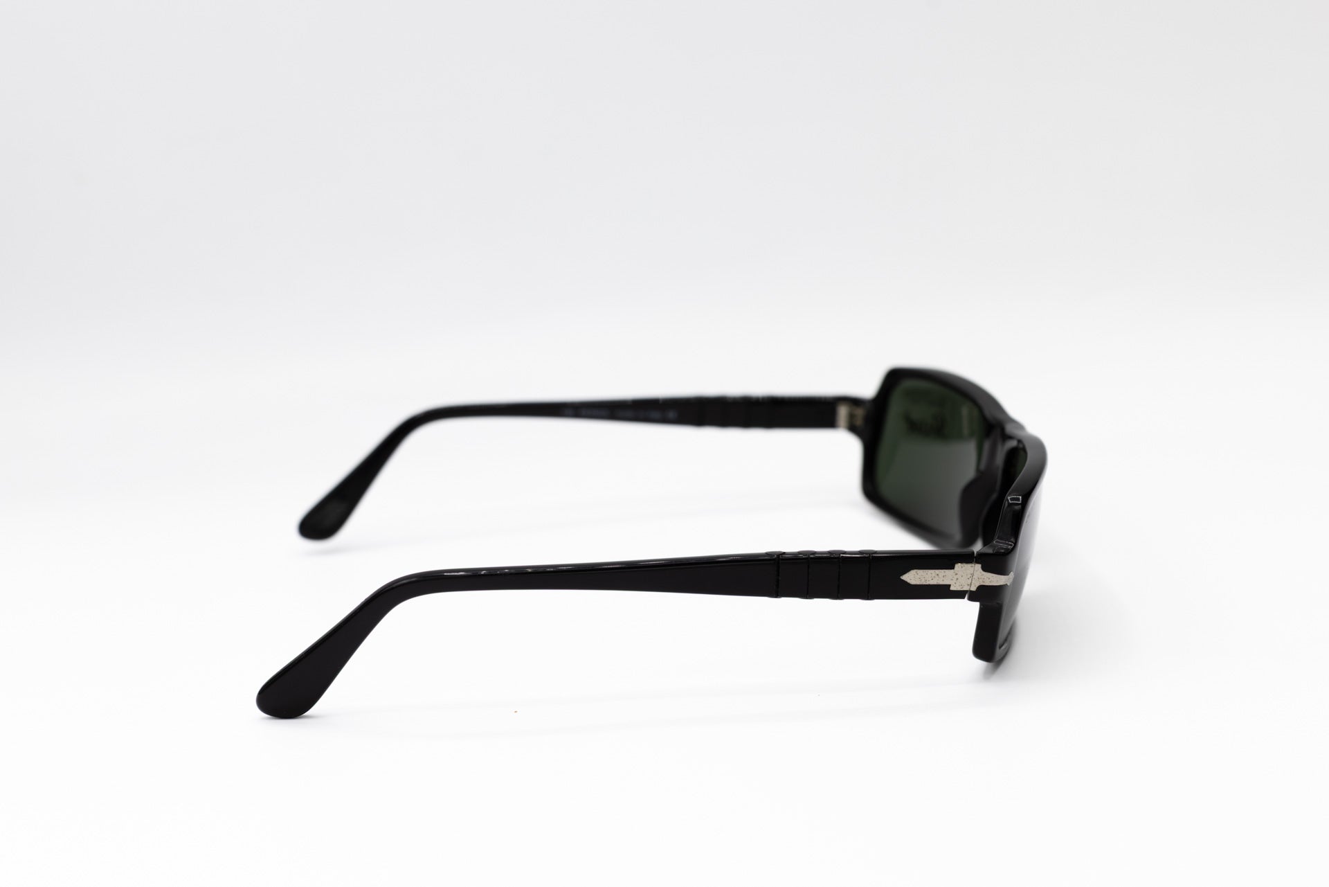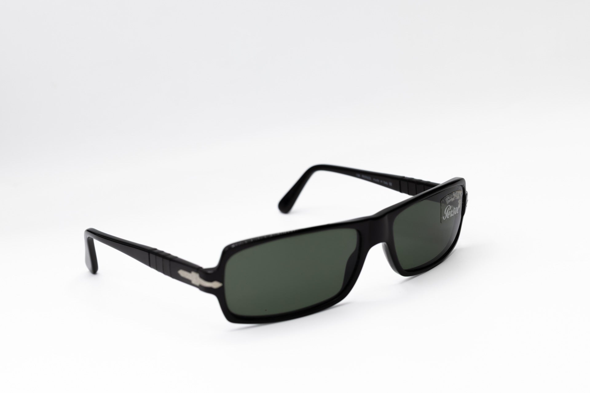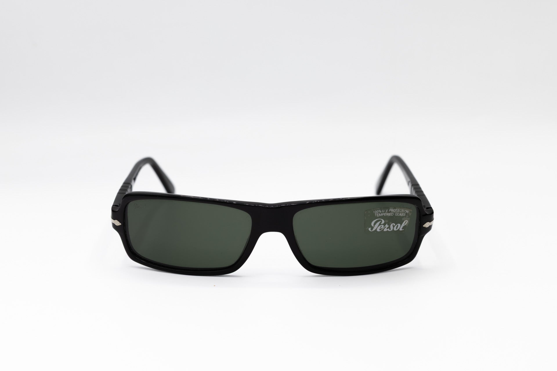These vintage y2k Persol sunglasses feature a sleek black frame, adding a touch of sophistication to any outfit, while the dark grey glass lenses provide 100% UV protection. The iconic arrow logo on the temple adds a touch of brand recognition to these already stylish sunglasses.