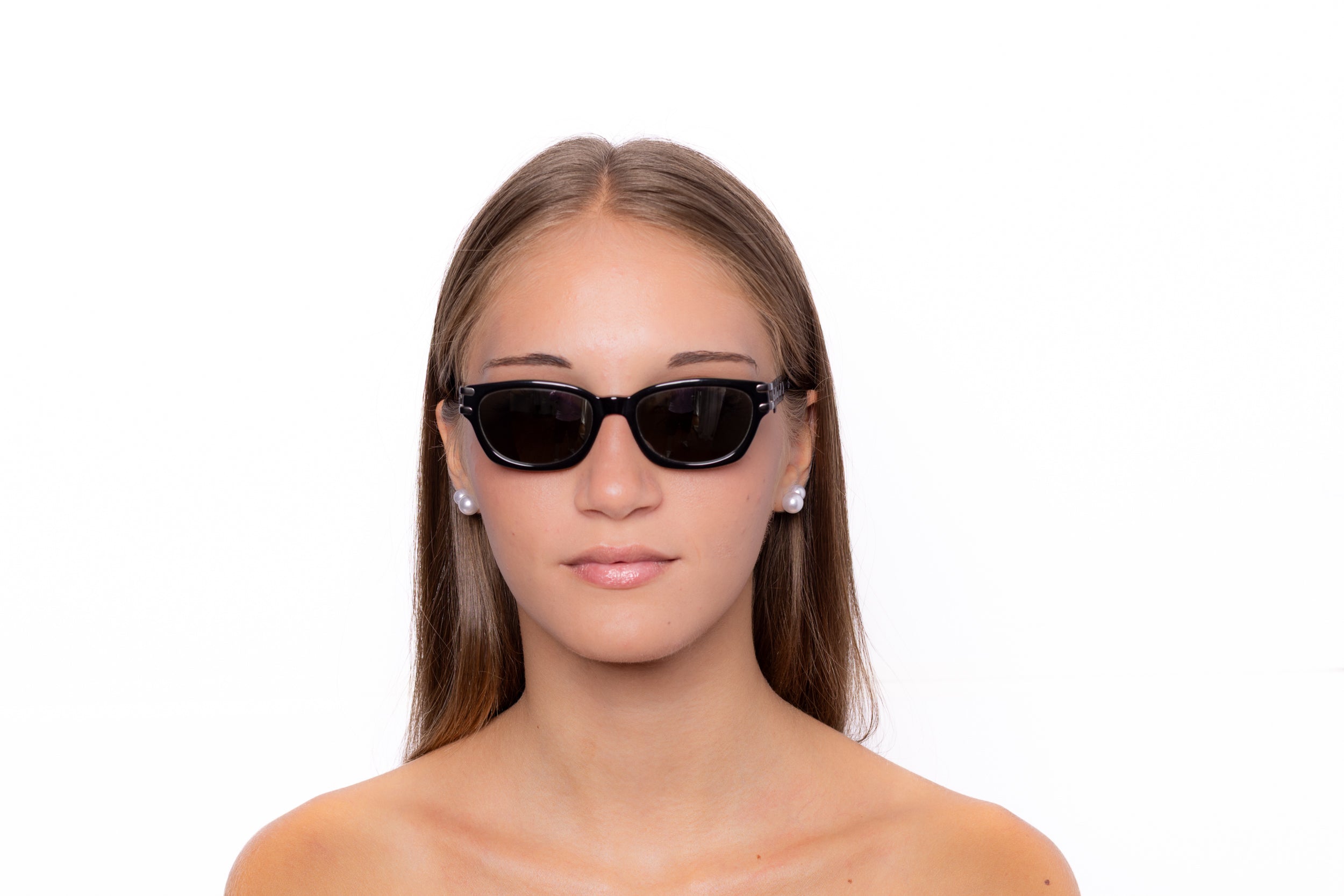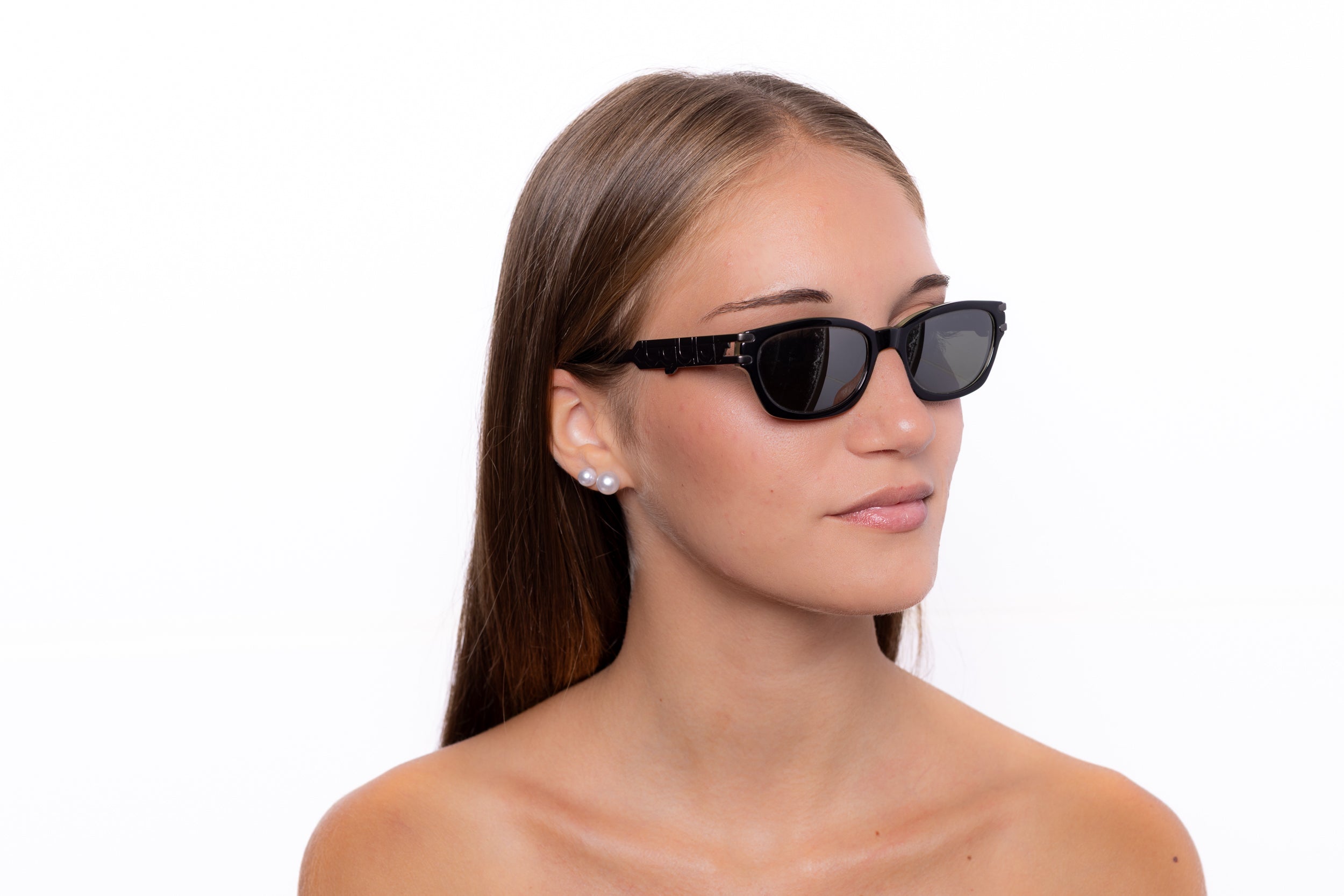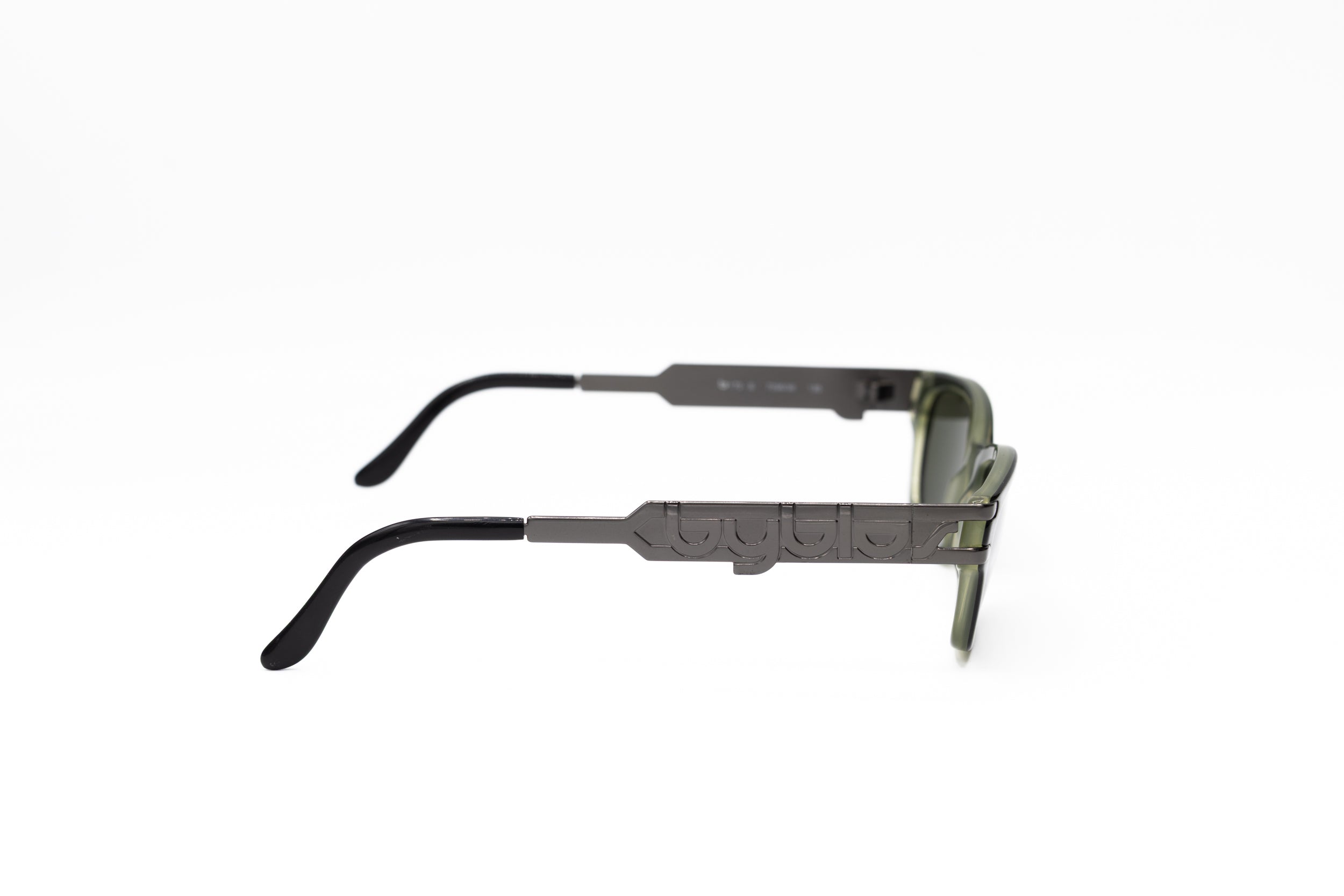 90s vintage Byblos sunglasses, featuring an squared frame in black plastic and temples in smoke grey metal, enhanced by the iconic BYBLOS logo embossed on the sides.